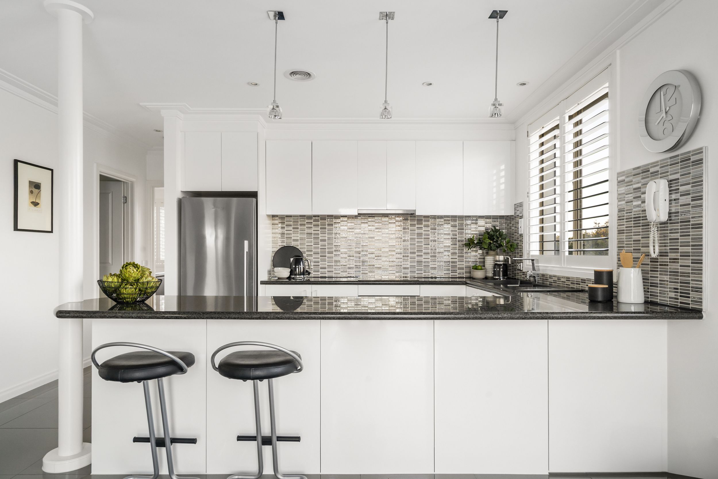 - Kitchen & Elevated BalconyConnection – Central kitchen with island bench and breakfast seatingflowing to an upstairs balcony with leafy parkland views.